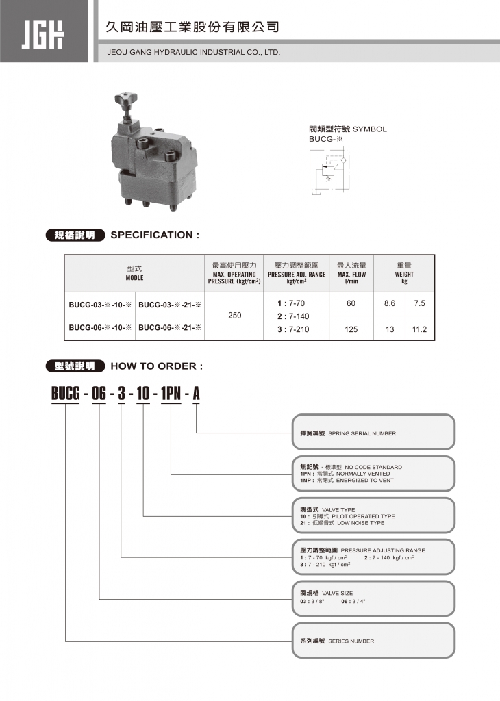 JGH載溢流閥常規(guī)型號參考:BUCG-03-1-10-1NP , BUCG-03-1-10-1PN , BUCG-03-1-21-1NP , BUCG-03-1-21-1PN , BUCG-03-2-10-1NP , BUCG-03-2-10-1PN , BUCG-03-2-21-1NP , BUCG-03-2-21-1PN , BUCG-03-3-10-1NP , BUCG-03-3-10-1PN , BUCG-03-3-21-1NP , BUCG-03-3-21-1PN , BUCG-06-1-10-1NP , BUCG-06-1-10-1PN , BUCG-06-1-21-1NP , BUCG-06-1-21-1PN , BUCG-06-2-10-1NP , BUCG-06-2-10-1PN , BUCG-06-2-21-1NP , BUCG-06-2-21-1PN , BUCG-06-3-10-1NP , BUCG-06-3-10-1PN , BUCG-06-3-21-1NP , BUCG-06-3-21-1PN