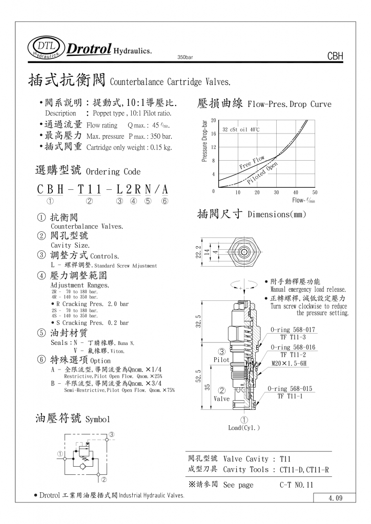 DTL插式抗衡閥常規(guī)型號(hào)參考:CBH-T11-L2RN/A , CBH-T11-L4RN/A , CBH-T11-L2SN/A , CBH-T11-L4SN/A , CBH-T11-L2RV/A , CBH-T11-L4RV/A , CBH-T11-L2SV/A , CBH-T11-L4SV/A , CBH-T11-L2RN/B , CBH-T11-L4RN/B , CBH-T11-L2SN/B , CBH-T11-L4SN/B , CBH-T11-L2RV/B , CBH-T11-L4RV/B , CBH-T11-L2SV/B , CBH-T11-L4SV/B