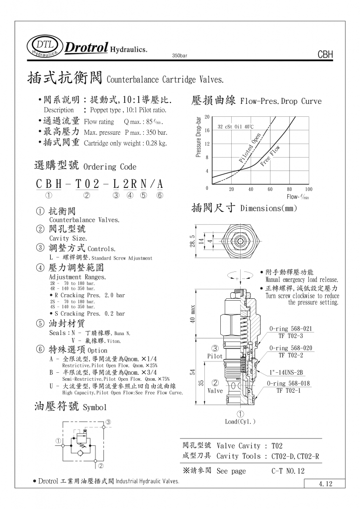 DTL插式抗衡閥常規(guī)型號(hào)參考:CBH-093-L2RN/A , CBH-093-L2RN/B , CBH-093-L2RN/U , CBH-093-L2RV/A , CBH-093-L2RV/B , CBH-093-L2RV/U , CBH-093-L2SN/A , CBH-093-L2SN/B , CBH-093-L2SN/U , CBH-093-L2SV/A , CBH-093-L2SV/B , CBH-093-L2SV/U , CBH-093-L4RN/A , CBH-093-L4RN/B , CBH-093-L4RN/U , CBH-093-L4RV/A , CBH-093-L4RV/B , CBH-093-L4RV/U , CBH-093-L4SN/A , CBH-093-L4SN/B , CBH-093-L4SN/U , CBH-093-L4SV/A , CBH-093-L4SV/B , CBH-093-L4SV/U