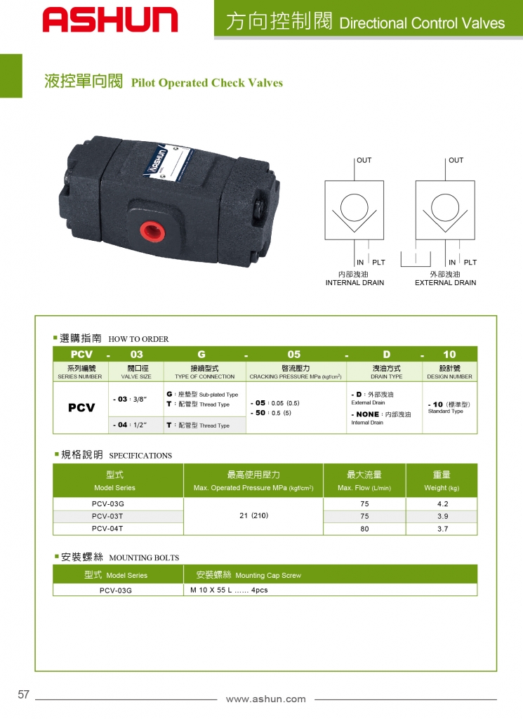 ASHUN方向控制閥 PCV系列液控單向閥