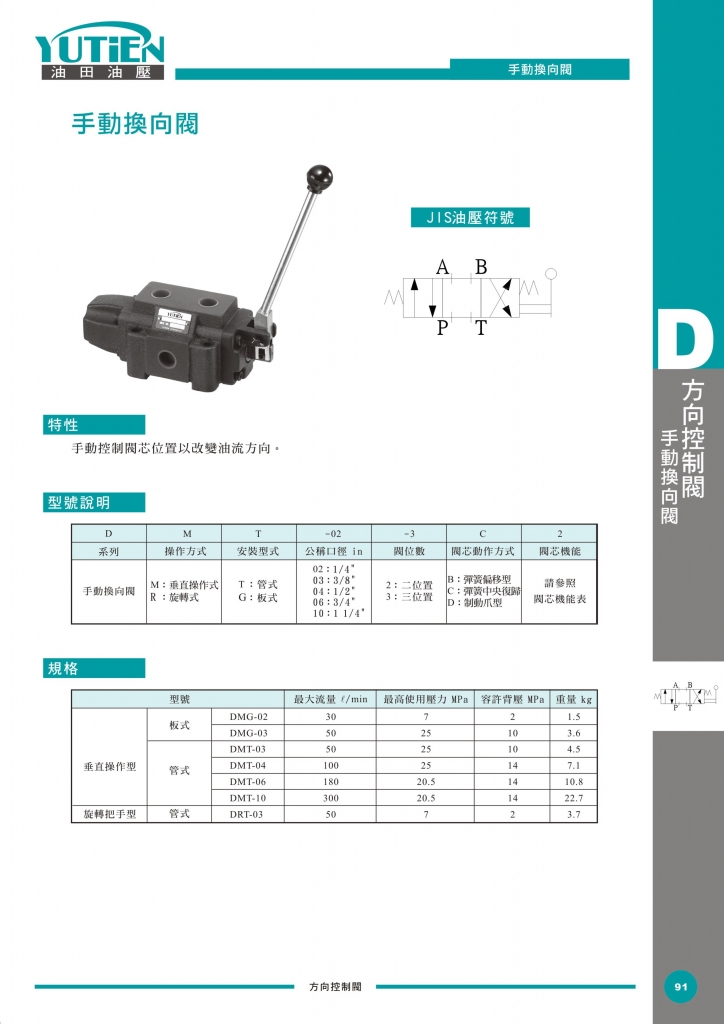 YUTIEN油田方向控制閥 DMG,DMT,DRT系列手動換向閥