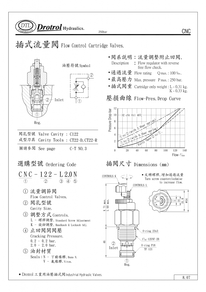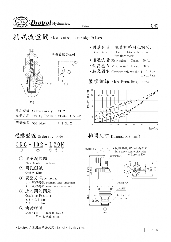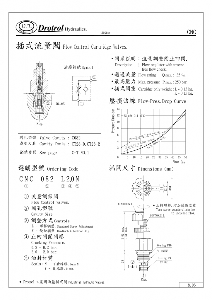 DTL插式流量閥部分常規(guī)型號(hào)參考:CNC-082-K0.2N , CNC-082-K0.2V , CNC-082-K2.0N , CNC-082-K2.0V , CNC-082-L0.2N , CNC-082-L0.2V , CNC-082-L2.0N , CNC-082-L2.0V ,