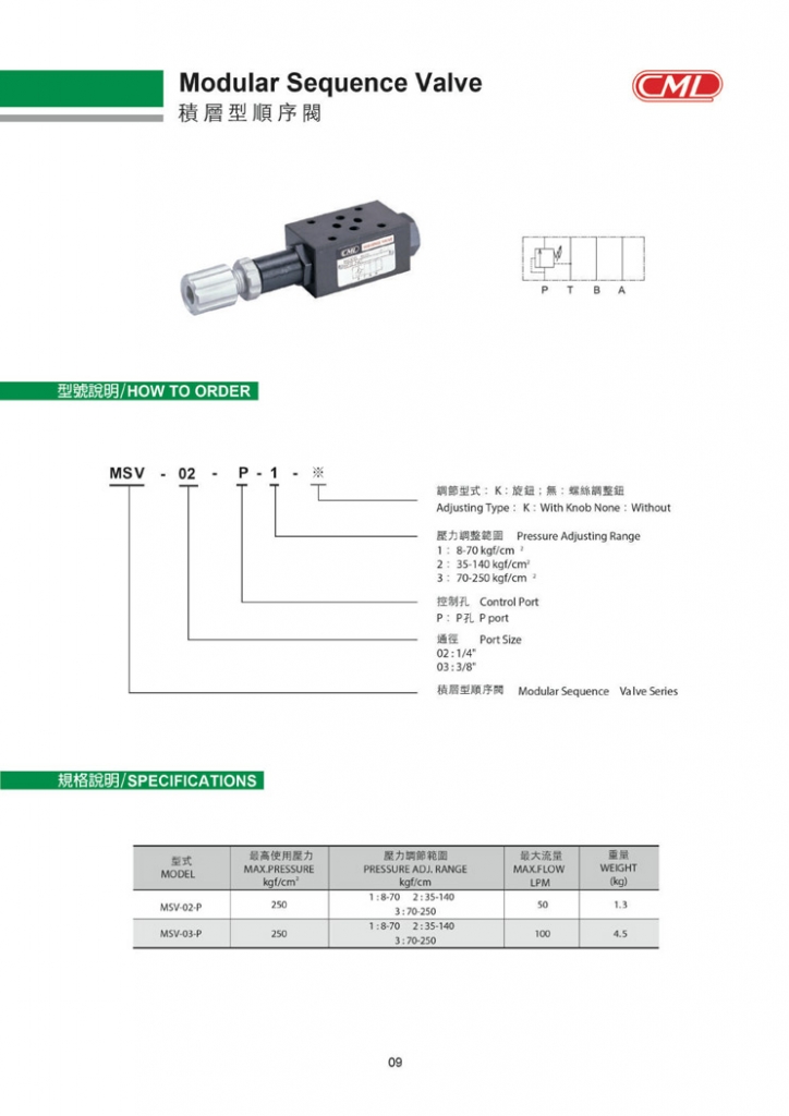 CML全懋疊加閥 積層型順序閥 MSV-02,MSV-03系列