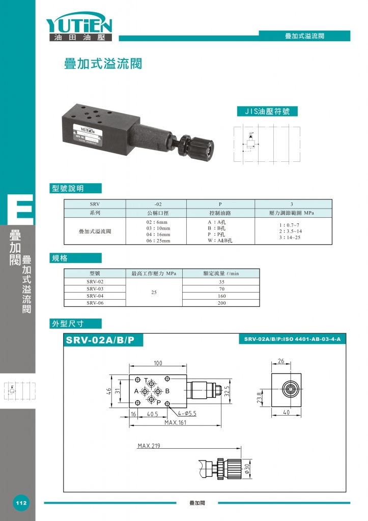 YUTIEN油田疊加閥 SRV-02,03,04,06系列疊加式溢流閥