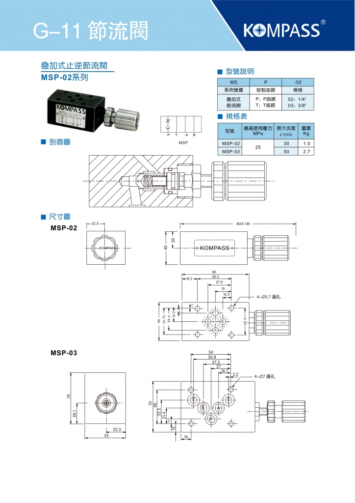 KOMPASS康百世疊加閥 MSP,MST-02,03系列疊加式止逆節(jié)流閥