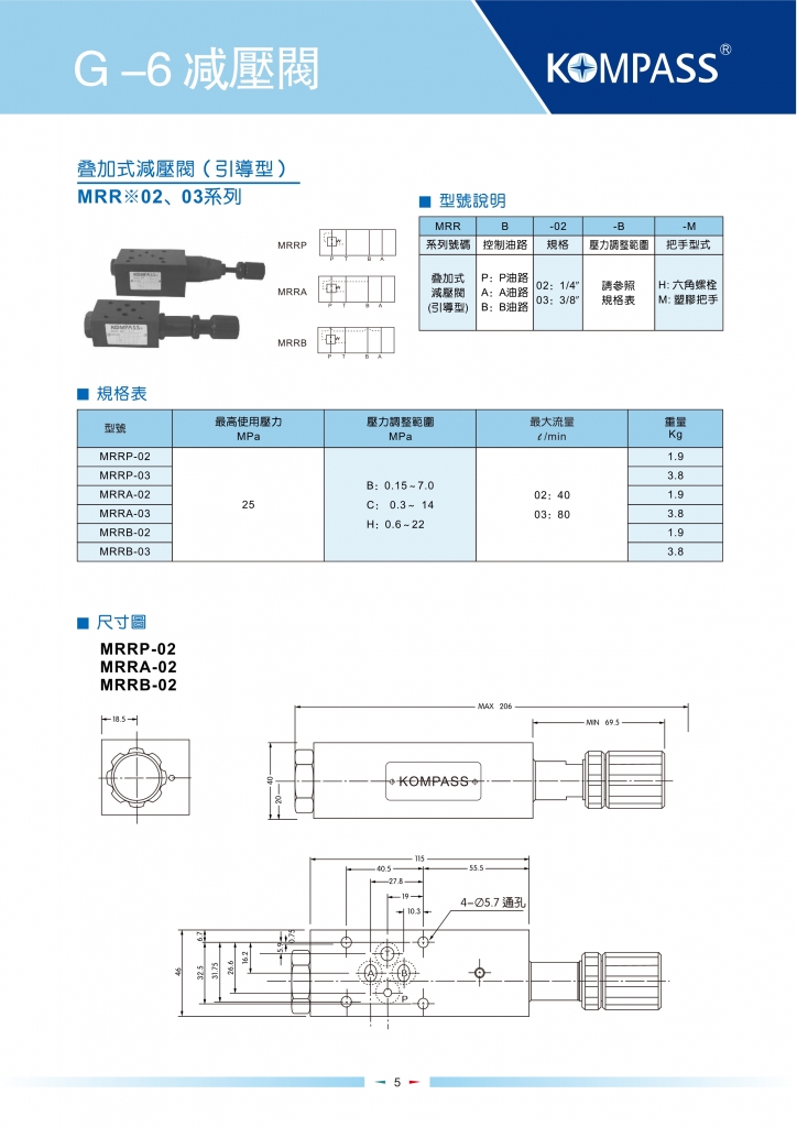 KOMPASS康百世疊加閥 MRP,MRA,MRB-02,03,04,06系列疊加式直動型減壓閥-KOMPASS康百世