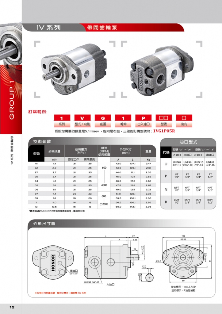 HONOR鈺盟齒輪泵 1V系列帶閥齒輪泵