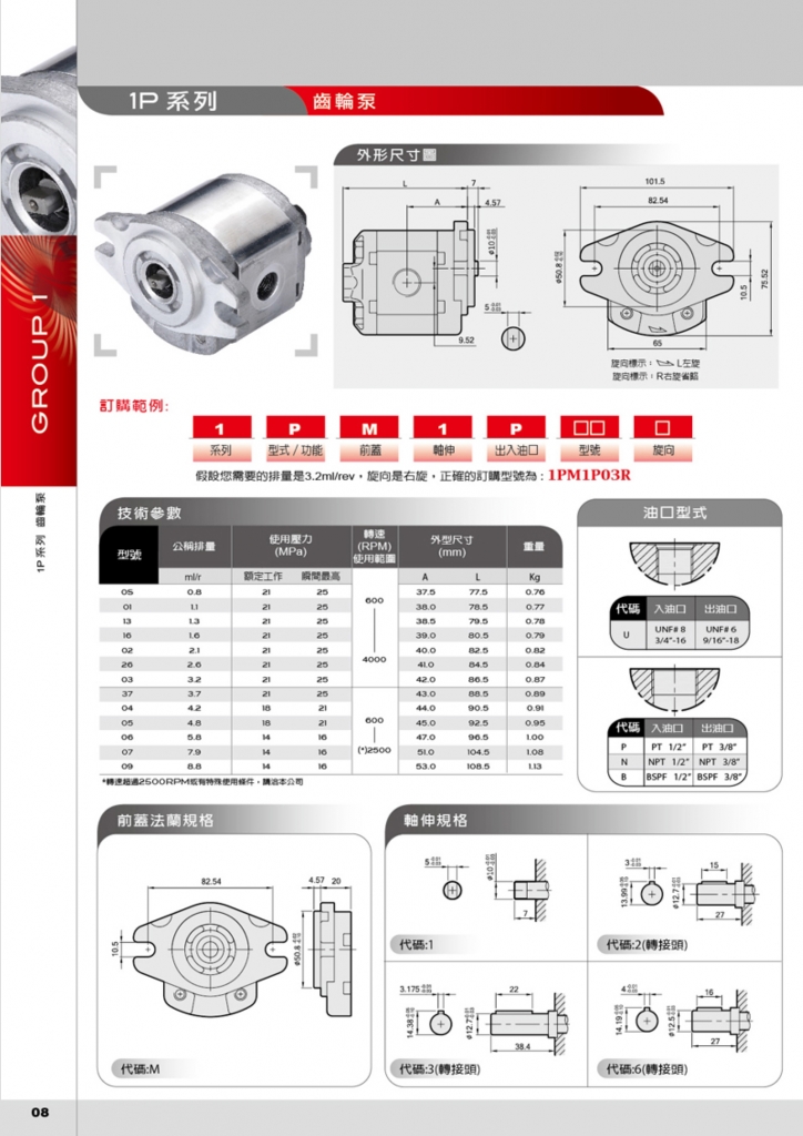 HONOR鈺盟齒輪泵 1P系列高壓齒輪泵