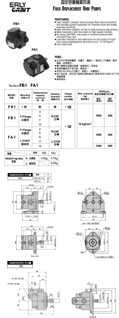 EALY弋力葉片泵 固定容量型輪葉泵 FA1,FB1系列低壓定量葉片泵