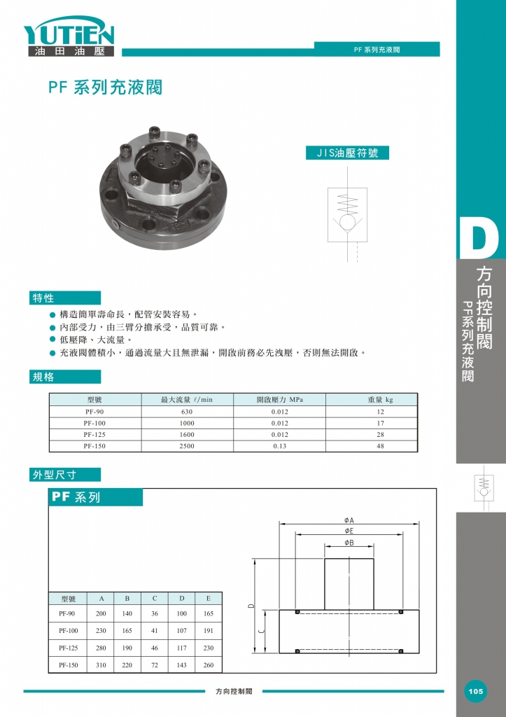 YUTIEN充液閥部分常規(guī)型號(hào)參考:PF-90 , PF-100 , PF-125 , PF-150