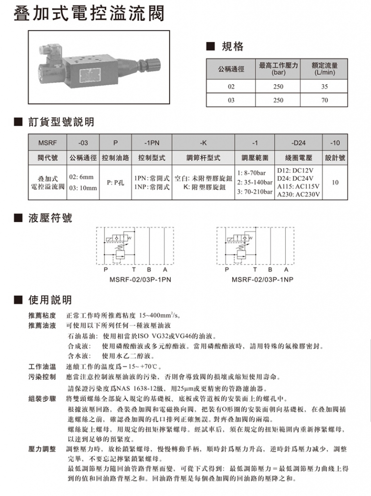 NORTHMAN北部精機疊加閥 MSRF-02,03系列疊加式電控溢流閥