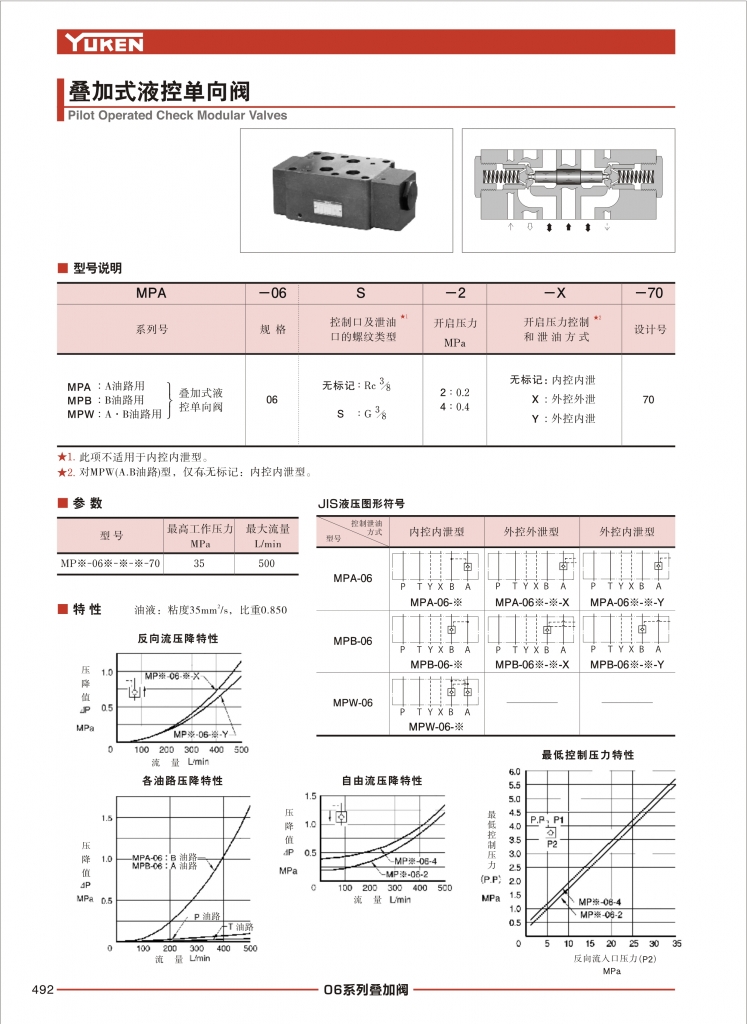 YUKEN油研疊加閥 MPA,MPB,MPW-06系列疊加式液控單向閥