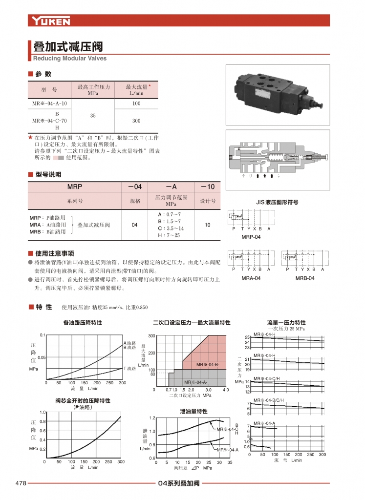 YUKEN油研疊加閥 MRP,MRA,MRB-04系列疊加式減壓閥