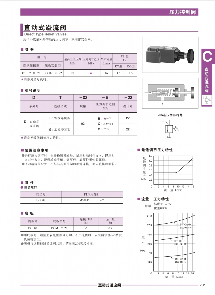 YUKEN直動式溢流閥部分常規(guī)型號參考:DG-02-B-22 , DG-02-C-22 , DG-02-H-22 , DT-02-B-22 , DT-02-C-22 , DT-02-H-22