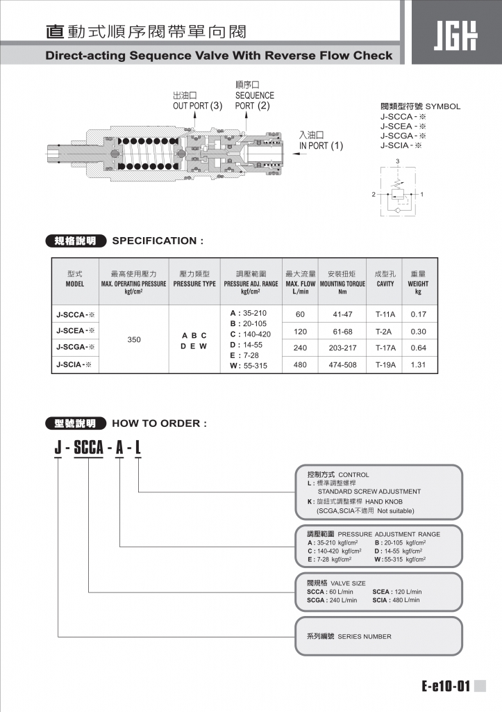 JGH久岡插裝閥 J-SCCA系列順序閥(直動型附止回閥)