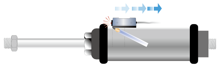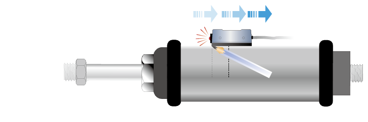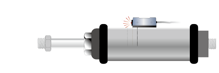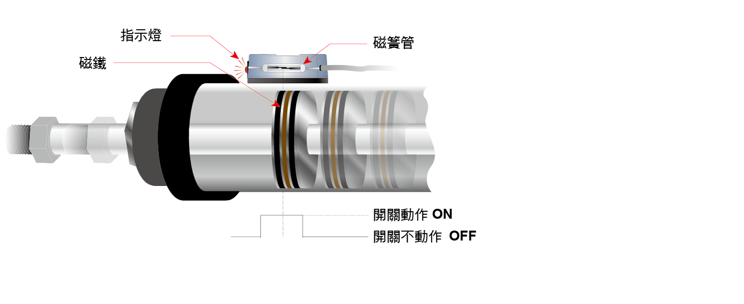 當(dāng)氣壓缸動(dòng)作,裝置在活塞內(nèi)的磁鐵向磁性傳感器接近時(shí),磁性傳感器內(nèi)的磁簧管將會(huì)感應(yīng)到磁場(chǎng)的變化,使磁簧管的接點(diǎn)閉合而導(dǎo)通電路。