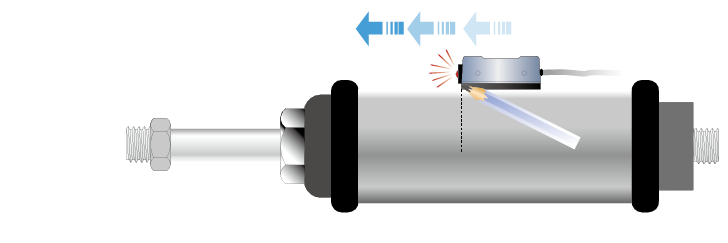 步驟 2. 將磁性傳感器緊貼氣壓缸壁向前滑行,ON時(shí)作一記號(hào)。