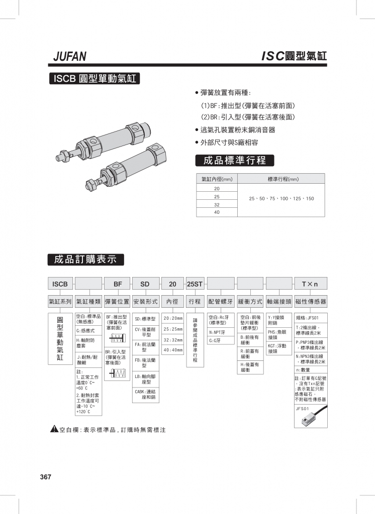 JUFAN君帆氣缸 ISC系列圓形氣缸