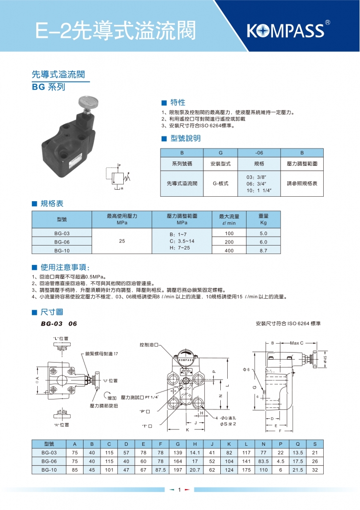 KOMPASS康百世溢流閥 BG系列先導(dǎo)式溢流閥