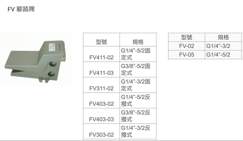 TRIVE空壓控制元件 FV系列腳踏閥
