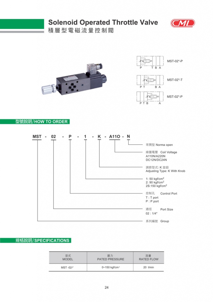 CML積層閥,積層型電磁流量控制閥MST-02系列型號(hào)參考
