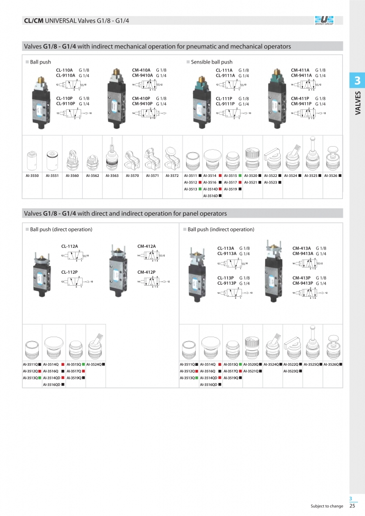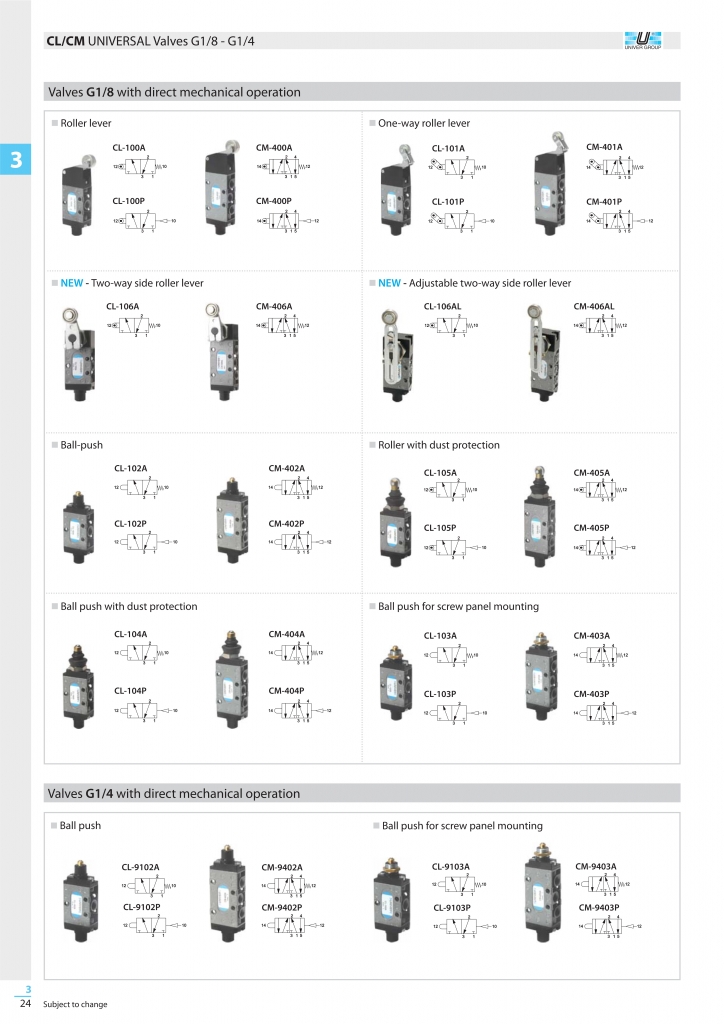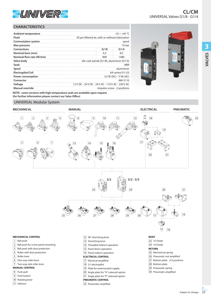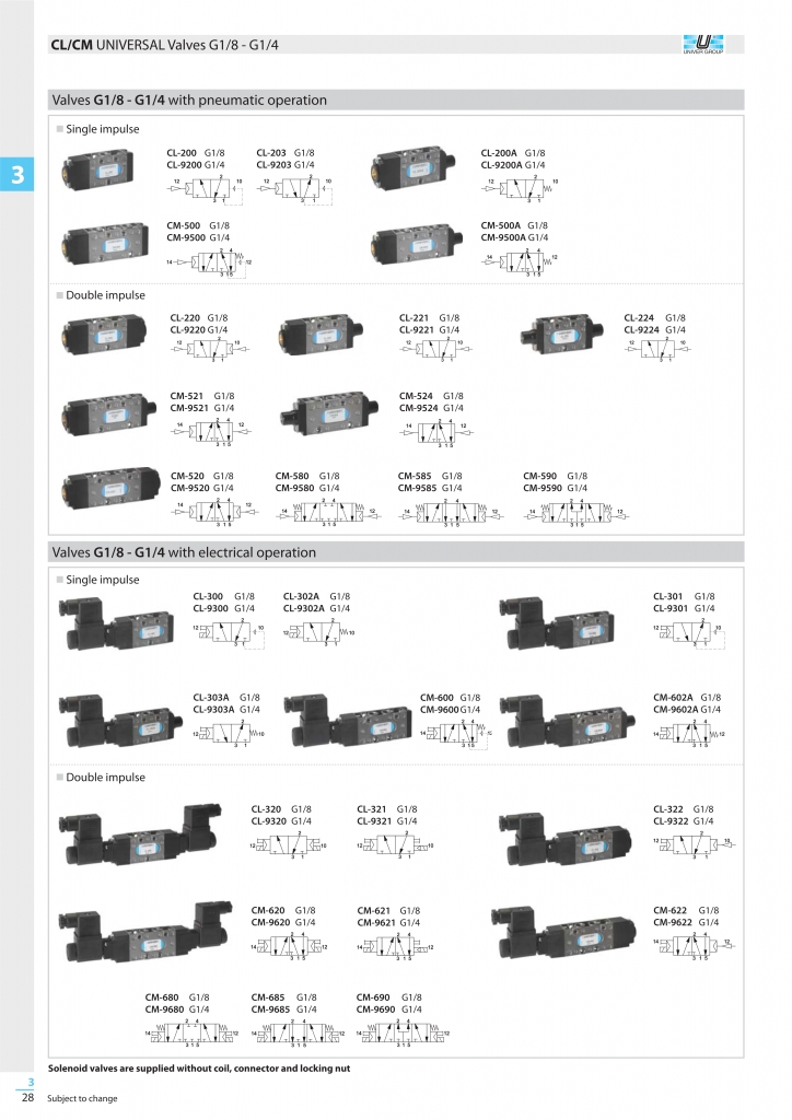 Valves and solenoid valves UNIVER 3/2-5/2-5/3 – G 1/8” – G1/4”